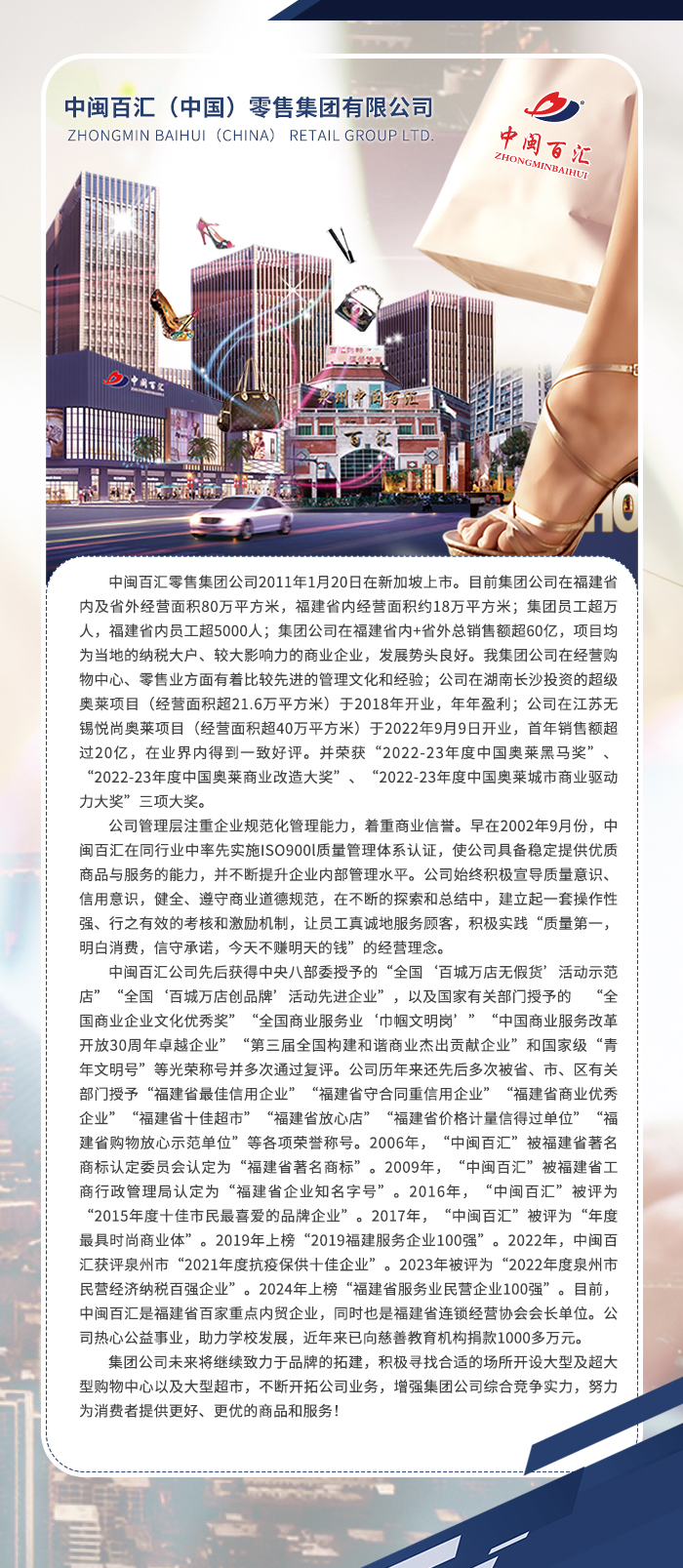 中閩百匯零售集團(tuán)簡(jiǎn)介,中閩百匯公司介紹,中閩百匯公司簡(jiǎn)介 、中閩百匯榮譽(yù)介紹,中閩百匯公司榮譽(yù),中閩百匯集團(tuán)榮譽(yù),中閩百匯企業(yè)形象,中閩百匯精彩視頻,中閩百匯熱門(mén)視頻,企業(yè)宣傳視頻,企業(yè)短視頻,中閩百匯資訊視頻