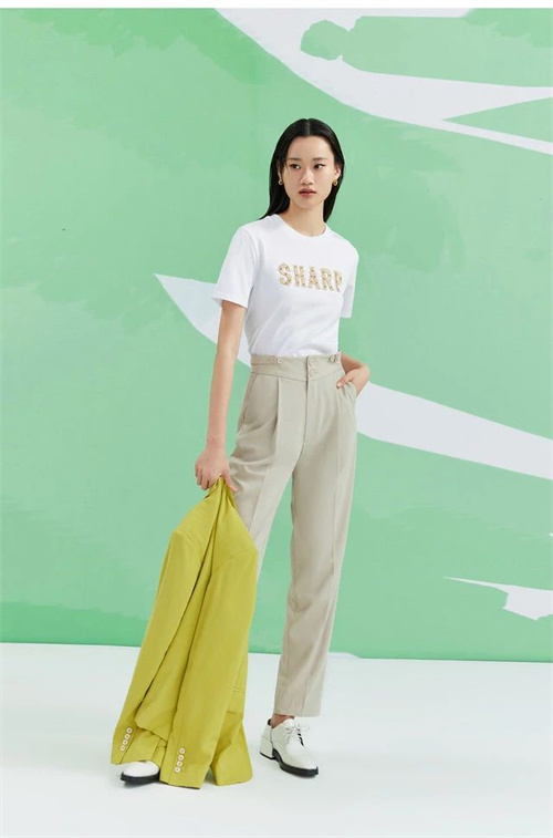 在城市的喧囂中,西裝九分褲搭配簡約的T恤,再加上白色皮鞋的點(diǎn)綴,不僅能展現(xiàn)自己的時(shí)尚品味,更能讓人在快節(jié)奏的生活中保持從容和文藝的氣質(zhì)。