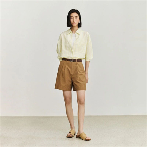 西裝短褲是夏季通勤時(shí)的一種時(shí)尚選擇,既有著正式的感覺,又可以展現(xiàn)出涼快和舒適??梢赃x擇一件淡色襯衫與之搭配,散發(fā)出隨意自在的休閑氣息。讓你在舒適和時(shí)尚之間找到平衡。