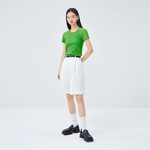 在夏季里,我們可以多穿些明亮鮮艷的顏色來增添生活的樂趣,白色西裝短褲便是一個(gè)不錯(cuò)的選擇。綠色上衣的搭配不僅能夠增添女性的柔美感,也能為整體穿搭帶來一份清爽。