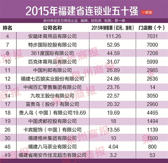 近日,福建省連鎖經(jīng)營(yíng)協(xié)會(huì)、福建省東南商務(wù)管理研究院、福建省貿(mào)易促進(jìn)中心聯(lián)合發(fā)布《2015年福建省連鎖業(yè)五十強(qiáng)》、《2015年福建省便利店十強(qiáng)》榜單。其中,百貨企業(yè)中中閩百匯零售集團(tuán)有限公司排名第一。