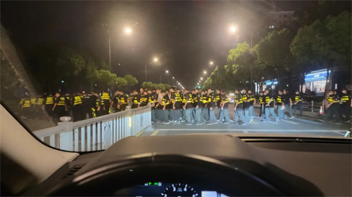 有網(wǎng)友拍下自己深夜離開時(shí) 遇到的安保大隊(duì) 浩浩蕩蕩的隊(duì)伍頗為震撼 讓對(duì)方不禁感嘆 在大家放心買買買的背后 是惠山一群人的堅(jiān)守