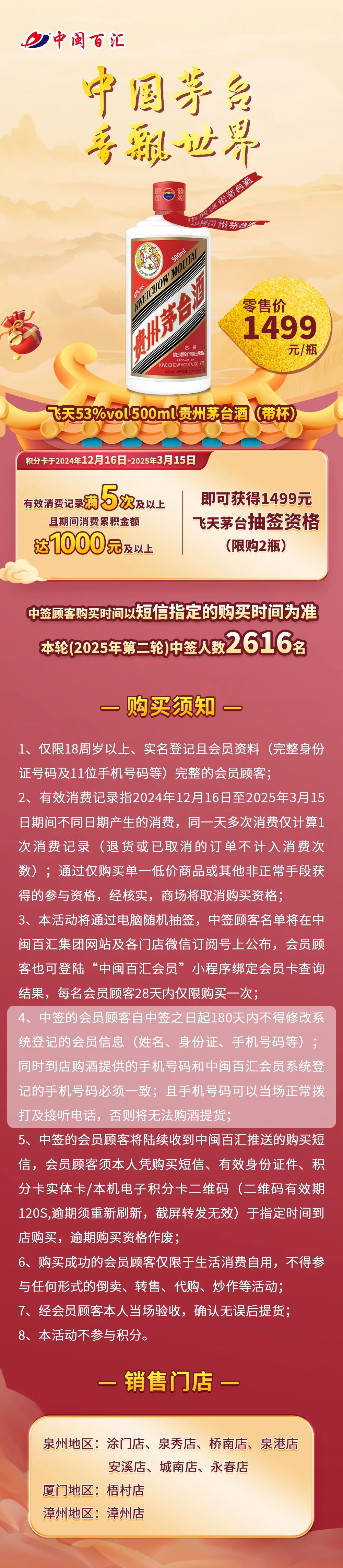 2025年第二輪飛天53%vol 500ml貴州茅臺酒(帶杯)購買資格(抽簽)開始啦!