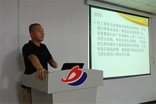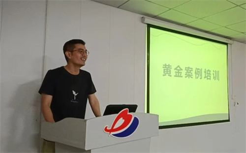 課程正式開啟,安溪店蘇世斌以《黃金案例培訓》為主題,通過案例分享,宣導柜臺人員應嚴格按照工作流程與要求為顧客服務,并提醒大家務必做好防損防盜工作。