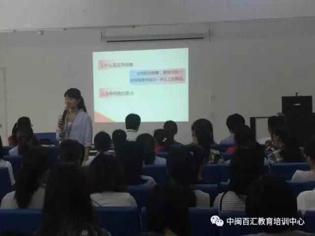 連帶銷售有助于提升客單價(jià),是每個(gè)導(dǎo)購(gòu)員的必備技能之一。公司于2016年組織的最后一次崗中培訓(xùn)《1+1……=100——導(dǎo)購(gòu)之連帶銷售》,各門店一線員工、現(xiàn)場(chǎng)部管理人員、辦公室業(yè)務(wù)人員參與,課程以“關(guān)于連帶銷售”、“如何做好連帶銷售”兩部分。通過(guò)穿插:導(dǎo)購(gòu)小品大賽中的優(yōu)秀小品VCR;宣導(dǎo)如何做好連帶銷售,提升客單價(jià);如何成功導(dǎo)購(gòu)顧客覺(jué)得貴的商品等方面內(nèi)容,達(dá)到了良好的效果。在此,謝謝各位同仁對(duì)培訓(xùn)工作的支持和配合!