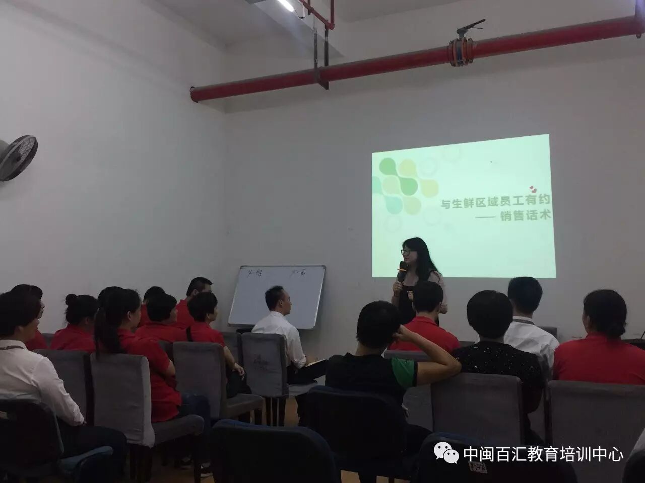 公司于2017年8月—9月組織開展主題為《與生鮮區(qū)域員工有約——銷售話術》的崗中培訓,參加對象為:各門店生鮮區(qū)域的員工及對口管理人員、業(yè)務人員。課程分“常見場景話術解析”、“銷售話術必備”兩個版塊,以分組PK的形式,采用計分制角逐冠軍,冠軍隊伍全隊均有獎品獎勵。課程通過穿插VCR、互動游戲等,與學員一起學習、探討在銷售過程中如何更好地與顧客溝通,從而更好地做好銷售。課程當中全員參與互動,氣氛佳,達到了良好的互動效果。