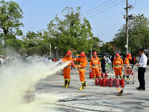 4月27日,宏毅百匯廣場(chǎng)舉辦2023年第二季度滅火實(shí)戰(zhàn)演練。滅火演習(xí)中,向員工示范滅火器及防毒面具等使用方法,讓員工對(duì)滅火器材的使用有深刻的了解,同時(shí)增強(qiáng)消防意識(shí)及自我防護(hù)能力。